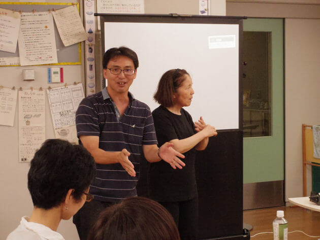 まずは、スローレーベルがこれまで取り組んできた事例や、どういった思いでこの講座を開催しているかなどをお話し。そのあと、今回の講座の会場であり、一緒にプログラム開発を行なっている障害者スポーツ文化センター横浜ラポールの和田さんより、ラポールでのアクセシビリティの考え方や事例の説明をしました。