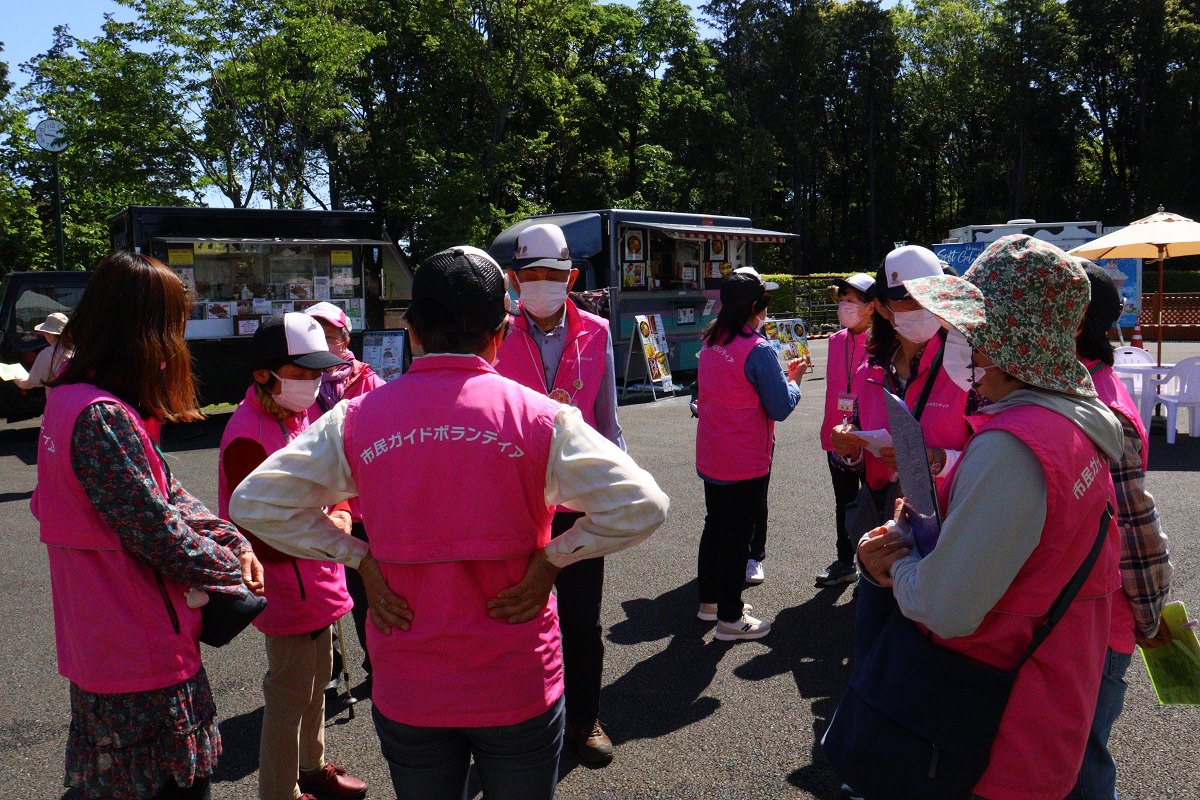 ボランティアガイドさんたちも、みなさまそれぞれ準備をしっかりして当日に挑みました。朝もみんなで集まって情報共有や確認を怠りません。